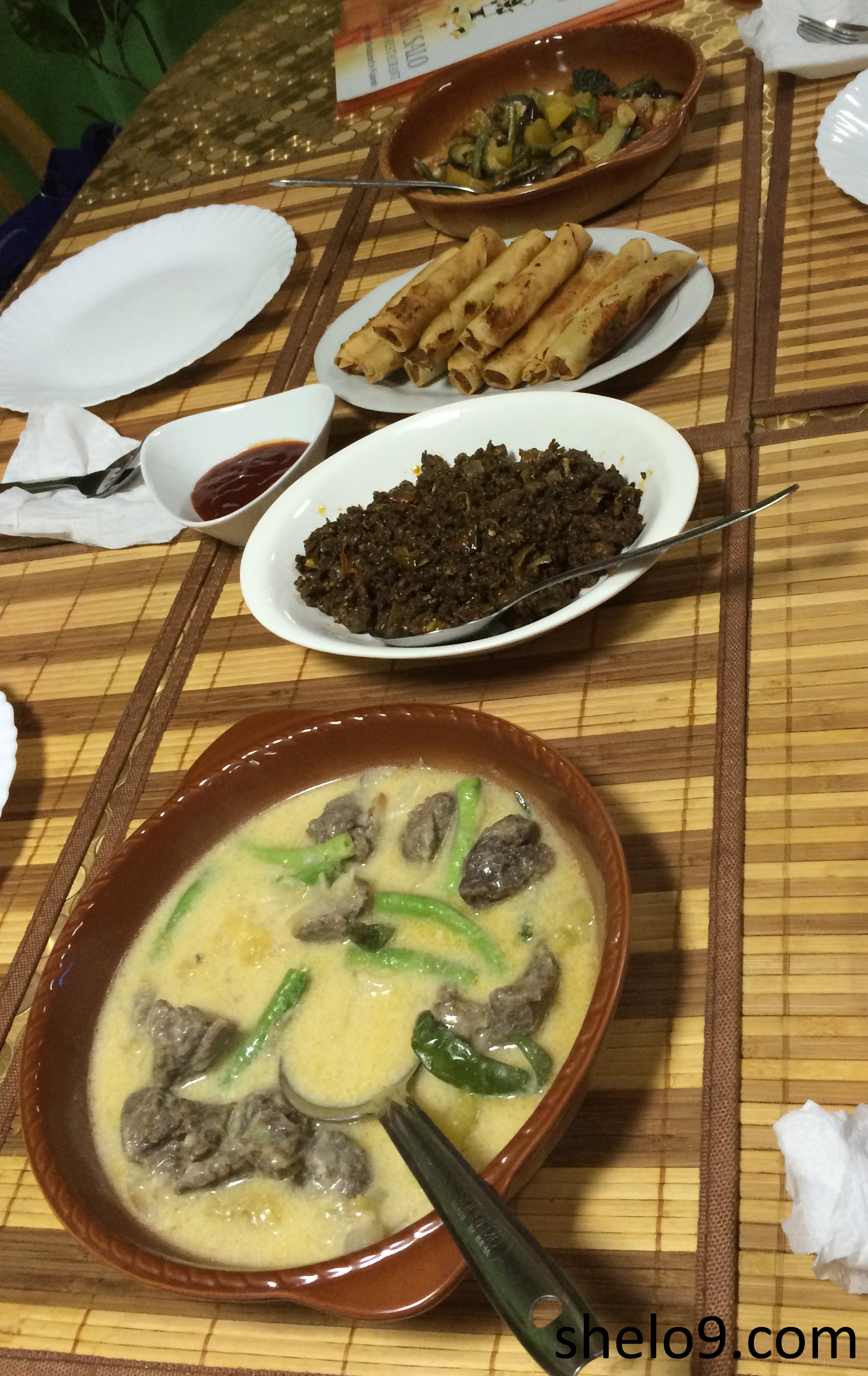 Next stop was Salu Salo which is a Filipino restaurant in an alleyway. I couldn’t tell you which alley, but you can find it on Foursquare. Here we had: Bicol express, Bopis, Lumpia, Pinakbet, and Kare Kare were our choices. Bicol express is a stew in a coconut milk sauce. Bopis is heart and lung sauteed in tomato, chili, and onion. Lumpia is meat filled fried rolls, Pinakbet is a shrimp and vegetable dish, and Kare Kare is an oxtail stew in peanut sauce. I loved Kare Kare and Lumpia, but my mate G was a big fan of Bopis.