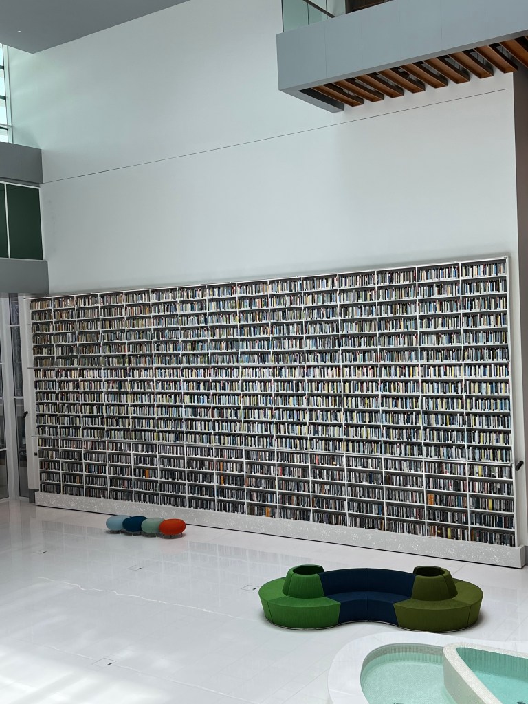 The library opened a few months ago and boasts the biggest collection of books in the region. It is huge and beautifully made, and huge. Seven floors huge.
